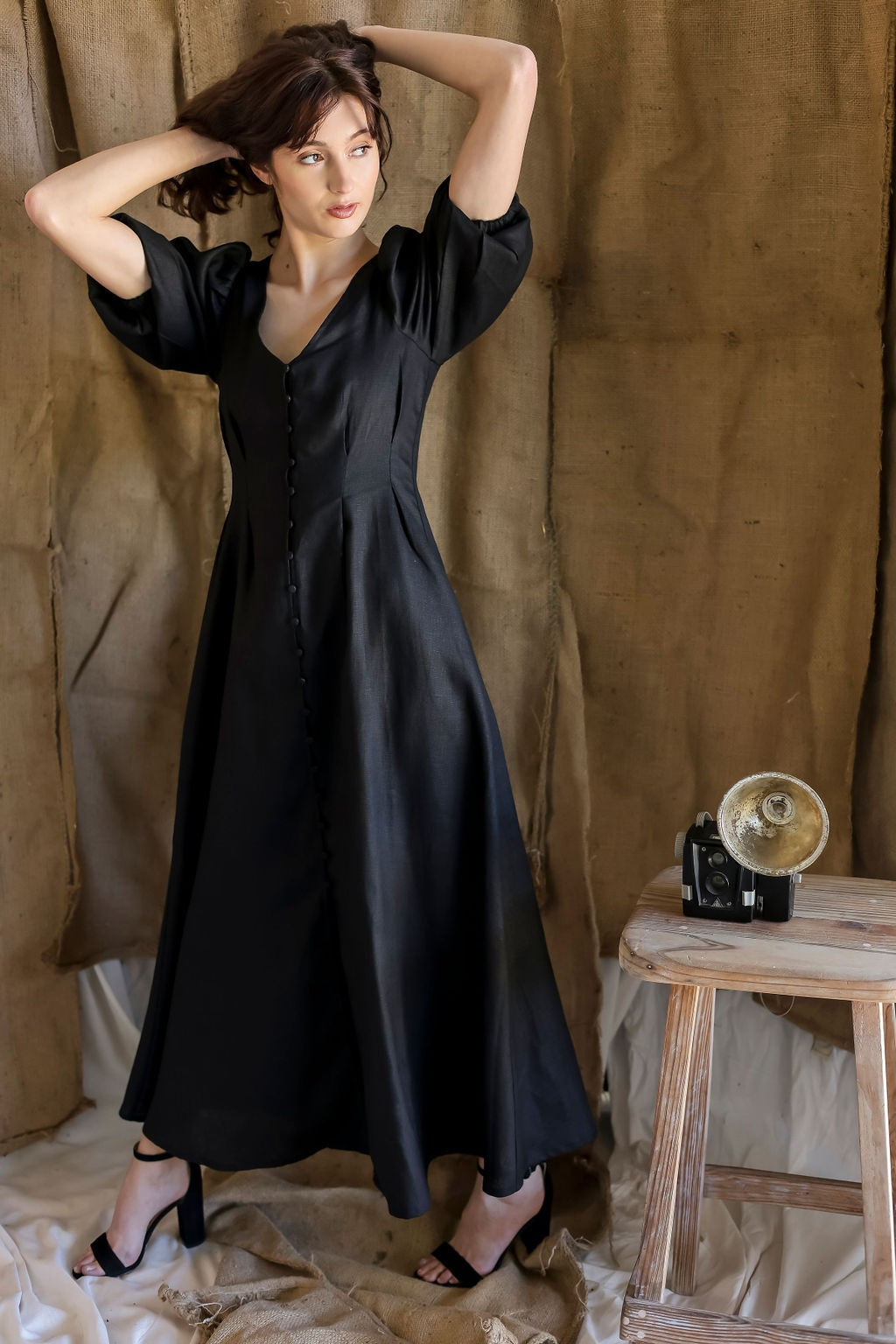 Elevate your wardrobe with our Pauli Dress, a sophisticated full-length dress crafted from 100% linen. Designed with a timeless black hue and elegant front buttons, this ankle-length piece combines effortless style with comfort. Perfect for any occasion, its breathable and lightweight fabric makes it a versatile staple for every season.